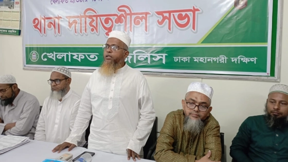 শুক্রবার (১৯ এপ্রিল) সকালে রাজধানীতে সংগঠনের কার্যালয়ে খেলাফত মজলিস ঢাকা মহানগরী দক্ষিণ আয়োজিত থানা দায়িত্বশীল সভায় প্রধান অতিথির বক্তব্যে তিনি এসব কথা বলেন। এক বিজ্ঞপ্তিতে এসব তথ্য জানানো হয়েছে।