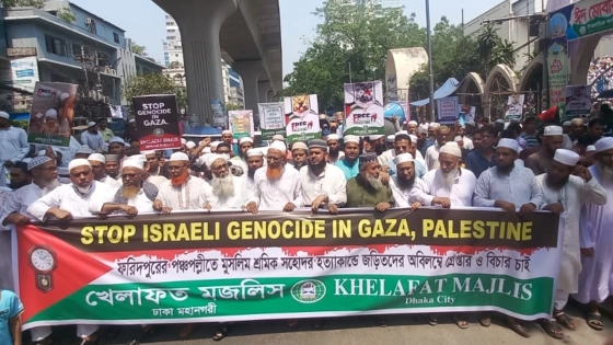 ফিলিস্তিনের গাজায় গণহত্যা বন্ধ ও ফরিদপুরের পঞ্চপল্লীতে মুসলিম শ্রমিক সহোদর হত্যাকাণ্ডে জড়িতদের অবিলম্বে গ্রেপ্তার ও বিচারের দাবিতে খেলাফত মজলিস ঢাকা মহানগরী শাখা এই কর্মসূচির আয়োজন করে।