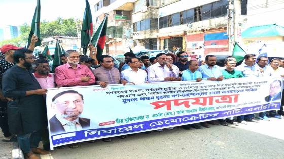 সংক্ষিপ্ত সমাবেশ শেষে সকাল ১১টায় এলডিপি কার্যালয়ের সামনে থেকে পদযাত্রাটি শুরু হয়। মগবাজার, মালিবাগ, কাকরাইল, নয়াপল্টন হয়ে মতিঝিলে গিয়ে শেষ হয়।