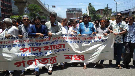 মঙ্গলবার (১৮ জুলাই) দুপুরে রাজধানীর মিরপুর ১২ নম্বর বাসস্ট্যান্ডে গণতন্ত্র মঞ্চের পদযাত্রাপূর্ব এক সংক্ষিপ্ত সমাবেশে এসব কথা বলেন তিনি।