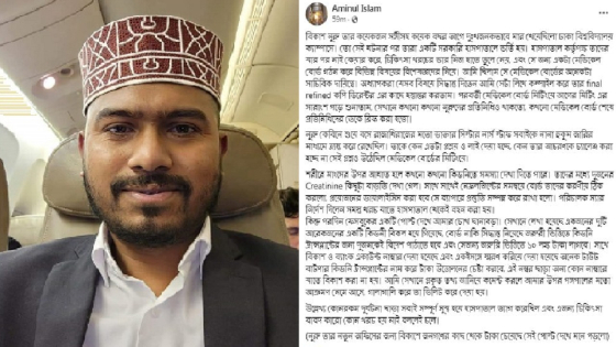 ওই স্ট্যাটাসে আরও জানানো হয়, ‘শরীরে মাংসের ওপর আঘাত হলে কখনও কখনও কিডনিতে সমস্যা দেখা দিতে পারে। তাদের মধ্যে দুজনের ক্রিয়েটিনিন কিছুটা বাড়তি দেখা গেল। সাথে সাথেই নেফ্রলজিস্টের সমন্বয়ে বোর্ড তাদের করণীয় ঠিক করল, প্রয়োজনের ডায়ালাইসিস করা হবে, সে ব্যাপারে প্রস্তুতি সম্পন্ন করে রাখা হল। পরিচালক স্যার নির্দেশ দিলেন, সমস্ত খরচ যাতে হাসপাতাল থেকেই বহন করা হয়। কিন্তু পরদিন ফেসবুকের একটি পোস্ট দেখে আমার চোখ ছানাবড়া। সেখানে লেখা হয়েছে একজনের দুটি, আরেকজনের একটি কিডনি বিকল হয়ে গিয়েছে। বোর্ড নাকি সিদ্ধান্ত নিয়েছে, জরুরি ভিত্তিতে কিডনি ট্রান্সপ্লান্টের জন্য দুজনকেই বিদেশ পাঠাতে হবে এবং সেজন্য জরুরি ভিত্তিতে ১০ লাখ টাকা লাগবে। সঙ্গে বিকাশ ও ব্যাংক একাউন্ট নম্বর দেয়া হয়েছে। এবং একইসঙ্গে স্মরণ করিয়ে দেয়া হয়েছে অনেক টাউট বাটপার কিডনি ট্রান্সপ্লান্টের নাম করে টাকা উত্তোলনের চেষ্টা করবে। এই নম্বর ছাড়া অন্য কোনো নম্বরে যাতে বিকাশ করা না হয়। আমি সেখানে প্রকৃত তথ্য জানিয়ে কমেন্ট করলে আমার উপর পঙ্গপালের মত আক্রমণ নেমে আসে। গালাগালি করে তা ডিলিট করে দেয়া হয়।’