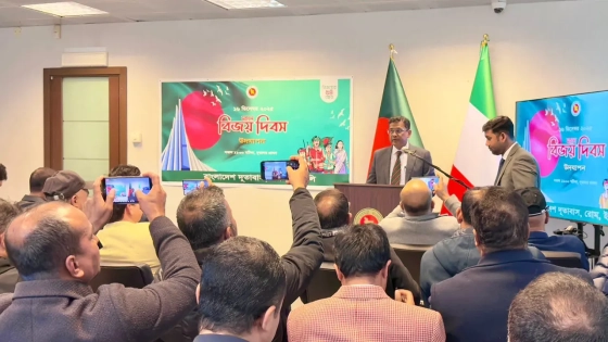 বাংলাদেশের মহান বিজয় দিবস উপলক্ষে রোমস্থ বাংলাদেশ দূতাবাসে যথাযোগ্য মর্যাদা ও ভাবগম্ভীর পরিবেশে দিবসটি উদযাপন করা হয়েছে।