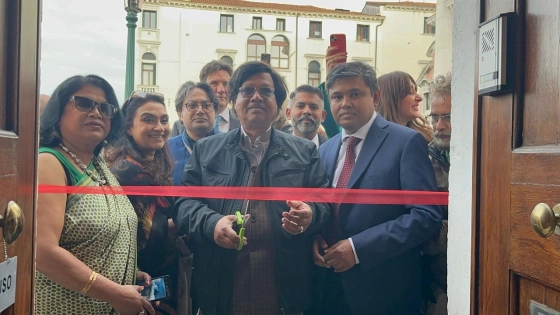 ইতালিতে মর্যাদাপূর্ণ ভেনিস ইন্টারন্যাশনাল আর্ট বিয়েনেলে অংশগ্রহণ করেছে বাংলাদেশ। ‘Yearning for Harmony: In the Crisis of the Civilization’ শিরোনামে বাংলাদেশ প্যাভিলিয়নটি গত ১৮ এপ্রিল পর্যটন শহর ভেনিসে বিপুলসংখ্যক শিল্পী, শিল্পপ্রেমী, শিল্প-সমালোচক, সাংবাদিক ও সদস্যদের উপস্থিতিতে আনুষ্ঠানিকভাবে উদ্বোধন করা হয়।