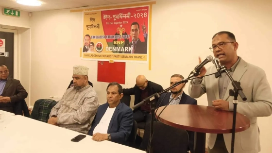 রোববার (২১ এপ্রিল) বাংলাদেশ সময় রাত ২টায় (স্থানীয় সময় শনিবার রাত সাড়ে ৯টায়) ডেনমার্কের রাজধানী কোপেনহেগেন শহরের হেরাল্ডগেট এলাকার একটি অডিটোরিয়ামে আয়োজিত ঈদ পুনর্মিলনী ও আলোচনাসভায় প্রধান অতিথির বক্তব্যে তিনি এসব কথা বলেন।
