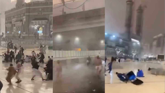 সৌদি আরবের মক্কা ও জেদ্দাসহ বিভিন্ন অঞ্চলে তীব্র ঝড় আঘাত হেনেছে। মঙ্গলবার (২২ আগস্ট) ঝড়ের পাশাপাশি ভয়ংকর বজ্রপাতেরও সৃষ্টি হয়। এতে বিভিন্ন স্থানে ক্ষয়-ক্ষতির খবর পাওয়া গেছে। সামাজিক মাধ্যমে ছড়িয়েছে এর বেশকিছু ভিডিও। এতে দেখা যায়, মক্কা শরীফে নামাজরত মুসল্লিদের তীব্র ঝড় উড়িয়ে নিচ্ছে।