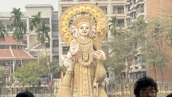 দেবীকে আরাধনার মহা ধুমধামে আয়োজন করা হয়েছে ঢাকা বিশ্ববিদ্যালয়ের (ঢাবি) জগন্নাথ হলে।