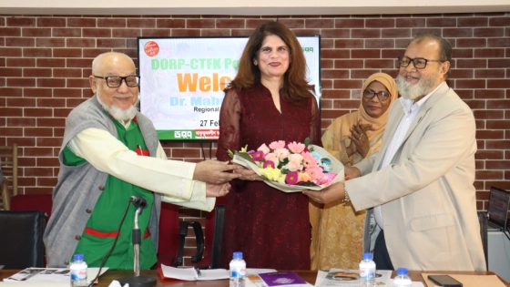 ডর্প কার্যালয়ে অনুষ্ঠিত সভায় উপস্থিত ছিলেন, সিটিএফকে এর দক্ষিণ এশিয়া বিষয়ক আঞ্চলিক পরিচালক ড. মাহিন মালিক। ড. মাহিন মালিক তার বক্তব্যে বলেন, “তামাকের আগ্রাসন রুখতে ডর্প ও সিটিএফকে সমন্বিত কার্যক্রম অব্যাহত রাখবে এবং বাংলাদেশসহ বিশ্বব্যপী তামাকমুক্ত ভবিষ্যত গড়তে অগ্রণী ভূমিকা পালন করবে”।