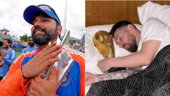 ভারতের নাটকীয় ফাইনাল জয়ের মুহূর্তে রোহিত শর্মা আবেগে আপ্লুত হয়ে পড়েন, হাঁটু গেড়ে বসে পড়েন। পরদিন সকালে, তার স্বপ্ন পূরণের মুহূর্তটি তিনি ইনস্টাগ্রামে পোস্ট করা একটি সেলফিতে তুলে ধরেন, যেখানে বার্বাডোসের হোটেল রুমে তার বিছানার পাশে টি২০ বিশ্বকাপ ট্রফি দেখা যায়। যে ছবির সাথে লিওনেল মেসির কাতার বিশ্বকাপ জয়ের পরদিনের সেই বিখ্যাত ছবির অনেক মিল আছে।