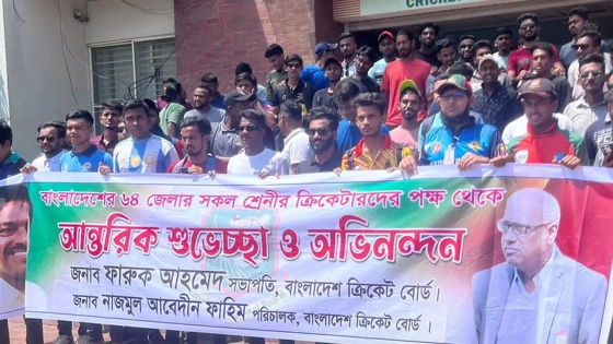 বিসিবির নতুন পরিচালক নাজমুল আবেদীন ফাহিম, যিনি নিজেও একজন বরেণ্য কোচ ও ক্রিকেট সংগঠক, ক্রিকেটারদের ফুলেল শুভেচ্ছা গ্রহণ করে তাদের দাবি মনোযোগ সহকারে শোনেন এবং প্রয়োজনীয় পদক্ষেপ নেওয়ার আশ্বাস দেন।