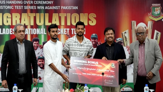 সেই বোনাসের একটা অংশ বন্যার্তদের দেওয়ার কথা জানিয়ে জাতীয় দলের অধিনায়ক নাজমুল হোসেন শান্ত বলেন, ‘আমরা সবাই জানি দেশের পরিস্থিতি খুব খারাপ। এখনো সবাই খুব স্ট্রাগল করছে। বন্যার যে অবস্থাটা ছিল, এখনো অনেক মানুষ বিপদে আছেন, কাটিয়ে ওঠার চেষ্টা করছেন। দেশের মানুষ অনেক কষ্ট করছেন, তাদের পাশে থাকার চেষ্টা করছেন। আমাদের যে বোনাসটা আজ আমরা পেলাম, দলের পক্ষ থেকে সবাই রাজি হয়েছে একটা অংশ তাদের সহায়তা করার জন্য- যতটুকু সম্ভব আমরা করার চেষ্টা করব।’