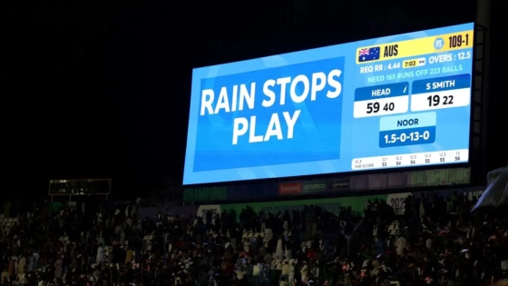 বৃষ্টির কারণে আরও একটি ম্যাচ পরিত্যক্ত হলো চ্যাম্পিয়ন্স ট্রফিতে। লাহোরের গাদ্দাফি স্টেডিয়ামে আফগানিস্তান ও অস্ট্রেলিয়ার গুরুত্বপূর্ণ ম্যাচটি ১২.৫ ওভার পর বন্ধ হয়ে যায়, শেষ পর্যন্ত সেটি আর মাঠে গড়ায়নি। ফলে দুই দল একটি করে পয়েন্ট ভাগাভাগি করেছে, যার ফলে চার পয়েন্ট নিয়ে সরাসরি সেমিফাইনালে উঠে গেছে অস্ট্রেলিয়া।