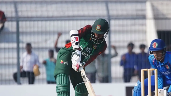 লক্ষ্য তাড়া করতে নেমে শুরুটা ভালো হয়নি স্বাগতিকদের। দ্রুত তিন উইকেট হারিয়ে চাপে পড়ে বাংলাদেশ। কিন্তু সেখান থেকেই ঘুরে দাঁড়ান কালাম সিদ্দিকী ও রিজান হোসেন। চতুর্থ উইকেটে ১৩৯ রানের জুটিতে দলকে ম্যাচে ফেরান তাঁরা। কালাম তুলে নেন যুব ওয়ানডে ক্যারিয়ারের প্রথম সেঞ্চুরি—১১ চারে ১১৯ বলে ১০১ রান করে ফিরেন তিনি। অপর প্রান্তে অপরাজিত ছিলেন রিজান ৭৫ রানে।