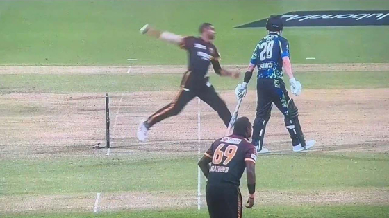 শনিবার (২ ডিসেম্বর) আবুধাবি টি-১০ লিগে চেন্নাই ব্রেভসের বিপক্ষে অভাবনীয় নো বল করেন নর্দার্ন ওয়ারিয়র্সের ভারতীয় পেস বোলার অভিমন্যু মিথুন। বোলিং ক্রিজ থেকে প্রায় এক ফুট দূরে পা স্টেপিং করেন ডানহাতি বোলার।