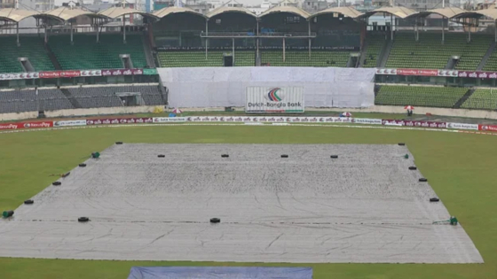 ঘূর্ণিঝড় মিগজাউমের প্রভাবে সকাল থেকেই গুঁড়িগুঁড়ি বৃষ্টি অব্যাহত রয়েছে দেশজুড়ে। বেরসিক বৃষ্টির কারণে সারাদিন উইকেট ও আউটফিল্ড কাভার দিয়ে ঢেকে রাখা হয়। এমনকি প্রথম সেশনের খেলাও মাঠে গড়ায়নি। তবে শেষ পর্যন্ত দুপুর ২টার সময় ঢাকা টেস্টের দ্বিতীয় দিনের খেলা পরিত্যক্ত ঘোষণা করেছে ম্যাচ রেফারি ডেভিড বুন। বৃহস্পতিবার (৭ ডিসেম্বর) মিরপুর শেরেবাংলা ক্রিকেট স্টেডিয়ামে দ্বিতীয় দিনের খেলা শুরু হওয়ার কথা ছিল সকাল ৯টা ১৫ মিনিটে। কিন্তু বৃষ্টির কারণে দুপুর ২টায় আজেকের দিনের খেলা পরিত্যক্ত করা হয়েছে।