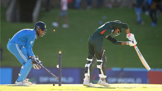 এদিকে দিনের শুরুতে ব্লুমফন্টেইনের উইকেটে ঘাস থাকায় টস জিতে বোলিংয়ের সিদ্ধান্ত নেন বাংলাদেশের অধিনায়ক মাহফুজুর রহমান। অধিনায়কের সিদ্ধান্তকে সঠিক প্রমাণ করেন পেসার মারুফ মৃধা। ৩১ রানের মধ্যে আরশিন কুলকার্নিকে ৭ এবং মুশির খানকে ৩ রানে বিদায় দেন এই বাঁহাতি পেসার। পাওয়ার প্লেতে দুই উইকেট হারালেও তৃতীয় জুটিতে ম্যাচে ফিরে আসে ভারত যুবারা।