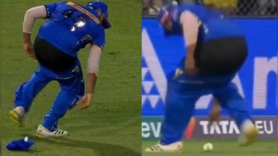 Now we know why Rohit and his fans have problems with Rohit fielding at boundary #MIvCSK #RohitSharma pic.twitter.com/YlT9guDyeo