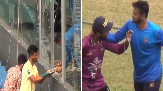 এদিকে ম্যাচ শেষে সাকিবের কাছে অটোগ্রাফ ও সেলফির আবদার করেন ভক্তরা। এবার ভক্তদের সেই আবদার পূরণ করেন বিশ্বসেরা অলরাউন্ডার। ফলে একই দিনে সাকিবের দুই রূপ দেখল ভক্তরা।