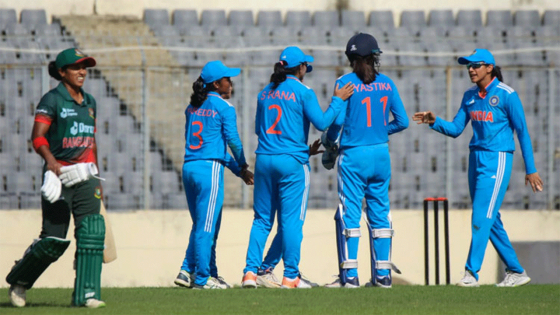 ২২৯ রানের লক্ষ্যে ব্যাট করতে নেমে শুরুতেই দুই ওপেনার আউট হন। শারমিন আক্তার সুপ্তা ২ রান ও মুর্শিদা খাতুন হ্যাপি ১২ রানে সাজঘরে ফেরেন। দলীয় ৩৮ রানে ফিরে যান লতা মণ্ডল। তবে চতুর্থ উইকেট জুটির ৬৮ রানে আশায় বুক বাঁধে বাংলাদেশ। তাদের জুটি ভাঙার সঙ্গে সঙ্গেই ঝড়ের মতো উড়ে যায় বাংলাদেশের ব্যাটিং লাইন। ৬ নম্বরে পজিশনে নামা জ্যোতিও ফিরে যান মাত্র ৩ রান করে। বাংলাদেশ গুটিয়ে যায় ১২০ রানে। ফাহিমা খাতুন ৬ রানে অপরাজিত থাকেন। জেমিমাহ রদ্রিগেজ মাত্র তিন রানে ৪টি উইকেট শিকার করেন। এ ছাড়া দেবিকা বিদ্যা ৩টি উইকেট তুলে নেন।