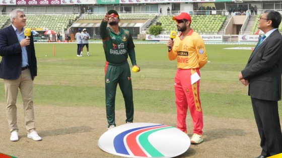 পাঁচ ম্যাচের সিরিজে প্রথম চারটি জিম্বাবুয়েকে হারিয়েছে বাংলাদেশ। রোববার (১২ মে) সিরিজের পঞ্চম ও শেষ ম্যাচের সফরকারীদের হোয়াইটওয়াশের সুযোগ নাজমুল হোসেন শান্তর দলের। এমন ম্যাচে টস হেরে ব্যাট করতে নেমেছে টাইগাররা।