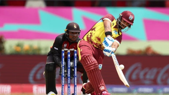 পরে জন কারিকোর ঝুঁলিয়ে দেওয়া ডেলিভারিতে ডাউন দ্য উইকেটে মারতে গিয়ে লং অনে থাকা টনির হাতে ক্যাচ দেন ২৭ রান করা পুরান। পরের ওভারে ফেরেন ব্রেন্ডন কিংও।