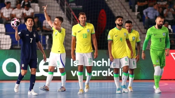 উজবেকিস্তানে অনুষ্ঠিত ফিফা ফুটসাল বিশ্বকাপের গ্রুপ বি-এর ম্যাচে শুক্রবার (২০ সেপ্টেম্বর) থাইল্যান্ডকে ৯-১ গোলে হারিয়েছে ব্রাজিল। পাঁচবারের বিশ্বচ্যাম্পিয়ন ব্রাজিলের কাছে এই বিশাল ব্যবধানে হারের পরও অবশ্য থাইল্যান্ড শেষ ষোলোতে জায়গা করে নিয়েছে। তবে ম্যাচের শুরু থেকেই ব্রাজিল তাদের আত্মবিশ্বাস এবং আধিপত্য বজায় রেখেছে।
