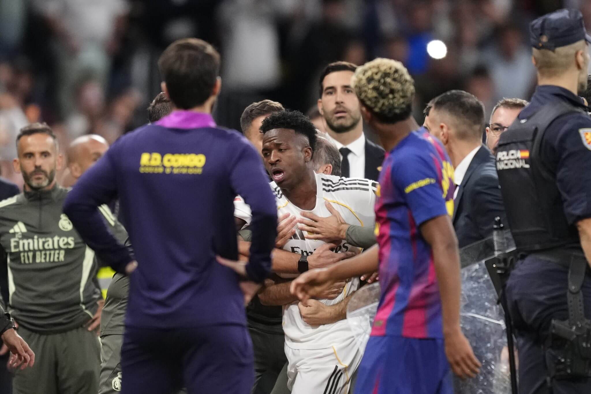 ‘তুমি অনেক বেশি কথা বলো,’ ৩৩ বছর বয়সী কারভাহাল ইয়ামালের সাথে কটাক্ষভরে হাত নেড়ে বলেন । সঙ্গে সঙ্গে উত্তেজনা ছড়িয়ে পড়ে মাঠে। রিয়াল গোলকিপার থিবো কোর্তোয়া ছুটে আসেন, ইয়ামালকে ভর্ৎসনা করেন। এদুয়ার্দো কামাভিঙ্গা চেষ্টা করেন শান্ত করতে, কিন্তু তখনই মাঠে জটলা তৈরি হয়। অবশেষে মার্ক কাসাদো এসে ইয়ামালকে নিয়ে যান টানেলের দিকে।