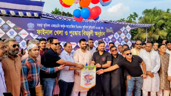 বগুড়ার ক্রীড়াপ্রেমী জনতা শুক্রবার বিকেলে উপভোগ করেছে ফুটবলের এক উৎসব। এরুলিয়া হাইখোলা বালুর মাঠে অনুষ্ঠিত হলো বগুড়া ফুটবল একাডেমি আয়োজিত বিএফএ ফুটবল টুর্নামেন্টের ফাইনাল। মাঠ ছিল কানায় কানায় পূর্ণ, হাজারো দর্শকের উৎসাহে মুখরিত। আর এই জমজমাট আয়োজনের প্রধান অতিথি ছিলেন বাংলাদেশ জাতীয় ক্রিকেট দলের সাবেক অধিনায়ক তামিম ইকবাল খান, যিনি এই সুযোগে বগুড়ায় আন্তর্জাতিক ক্রিকেট ফেরানোর আশ্বাস দিয়েছেন।