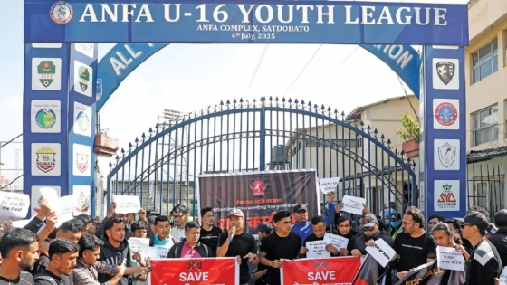 বৃহস্পতিবার সকালে রাজধানী কাঠমান্ডুর অল নেপাল ফুটবল অ্যাসোসিয়েশন (আনফা) কমপ্লেক্সের সামনে বিক্ষোভে অংশ নেন দেশটির পেশাদার ফুটবলাররা। তাদের প্রধান দাবি—স্থগিত থাকা ‘এ’ ডিভিশন লিগ দ্রুত চালু করতে হবে।