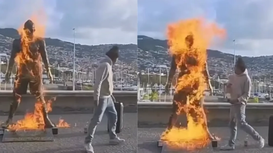 ফুনচালে ‘সিআর সেভেন’ জাদুঘরের বাইরে এই ব্যক্তি নিজেই আগুন দেওয়ার ভিডিও রেকর্ড করেছেন। ভিডিওতে দেখা যায়, সেই ব্যক্তি নিজেই মূর্তিটির ওপর দাহ্য তরল ঢেলে অদ্ভুতভাবে নাচছেন। পরে সেই ভিডিওটি ইনস্টাগ্রামে পোস্ট করেন এবং শিরোনাম দেন, ‘এটি ঈশ্বরের শেষ সতর্কবার্তা।’