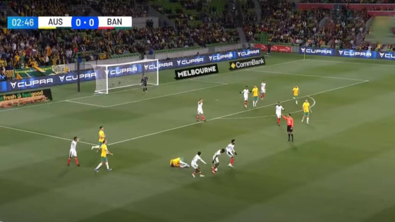 বিশ্বকাপ বাছাইপর্বের দ্বিতীয় রাউন্ডের ম্যাচ খেলতে অস্ট্রেলিয়ার বিপক্ষে মাঠে নেমেছে বাংলাদেশ ফুটবল দল। সবশেষ বাছাই পর্বের প্রিলিমিনারি রাউন্ডে খেলা মালদ্বীপ ম্যাচের একাদশ থেকে দুটি পরিবর্তন নিয়েছে সকারুদের মুখোমুখি হয়েছে জামাল ভূঁইয়ারা। ম্যাচের ৪ মিনিটের মাথায় স্বাগতিকদের ১-০ গোলে এগিয়ে দেন সকারু ডিফেন্ডার হ্যারি সোট্টার।