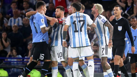 দক্ষিণ আমেরিকা অঞ্চলের বিশ্বকাপ ফুটবলের বাছাইপর্বের আজকের আর্জেন্টিনা ও উরুগুয়ের ম্যাচের একটি মুহূর্ত বেশ ভাইরাল হয়েছে। সামাজিক যোগাযোগ মাধ্যম এক্স-এ (সাবেক টুইটার) ছড়িয়ে পড়া এক ছবিতে দেখা যাচ্ছে লিওনেল মেসি উরুগুয়ে ডিফেন্ডার ম্যাথিয়াস অলিভিয়েরার টুঁটি চেপে ধরেছেন। এ ঘটনায় উরুগুয়ে মিডফিল্ডার ফেদেরিকো ভালভারদে আর্জেন্টিনা অধিনায়ককে তিরস্কার করে বলেন, ‘যা ইচ্ছে করে যাও’।