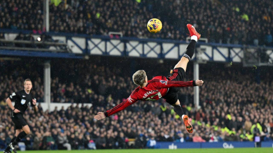 এভারটনের মাঠে দর্শকরা মাত্রই চেয়ারে বসতে শুরু করছিলেন। ঠিক সেই মুহূর্তে গোটা গুডিসন পার্ককে স্তব্ধ করে দেন আর্জেন্টাইন তরুণ গার্নাচো। ৩ মিনিটের মাথায় দিয়েগো দালতের ক্রসে ডি-বক্সের ভেতর থেকে দুর্দান্ত এক ভলিতে ‘ওভারহেড’ গোল করেন ম্যানইউ স্ট্রাইকার। হয়তো প্রিমিয়ার লিগের ইতিহাসে সেরা গোলটিই করেছেন রেড ডেভিল তারকা। বল জালে জড়িয়েই নিজের আইডল পর্তুগিজ যুবরাজ ক্রিস্টিয়ানো রোনালদোর ‘সিউইই’ উদযাপনও করেন গার্নাচো।