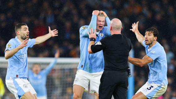 — Erling Haaland (@ErlingHaaland) December 3, 2023ম্যাচের পর আনুষ্ঠানিক সংবাদ সম্মেলনে সিটি কোচ পেপ গার্দিওলাকে হলান্ডের মাঠের প্রতিক্রিয়া সম্পর্কে জিজ্ঞাসা করা হলে তিনি তার স্ট্রাইকারের পক্ষ নিয়ে বলেন ‘ওর আর বাকি ১০ জন খেলোয়াড়ের প্রতিক্রিয়া একই। আইনে আছে, এ নিয়ে রেফারি বা চতুর্থ রেফারির সঙ্গে কথা বলা যায় না। (যদি বলা যেত) আজ আমাদের ১০ জনই লাল কার্ড দেখত।’