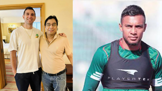 বিমানবন্দরে আর্জেন্টিনার ‘বাজপাখি’ খ্যাত মার্টিনেজের অপেক্ষায় ছিলেন বাংলাদেশ অধিনায়ক জামাল ভূঁইয়া। প্রধানমন্ত্রী শেখ হাসিনার সঙ্গে সৌজন্য সাক্ষাৎ শেষে মার্টিনেজ ভারতের উদ্দেশ্যে বিমানবন্দরের জন্য রওনা হন।