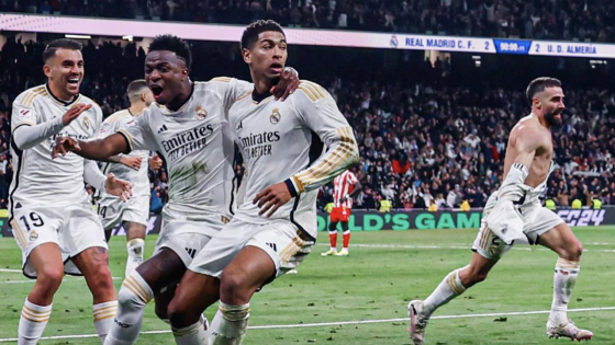 যোগ করা সময়ে লাল কার্ড দেখেন আলমেরিয়া কোচ। তার কিছুক্ষণ পর বেলিংহ্যামের হেডে বল পেয়ে খুব কাছ থেকে জাল খুঁজে নেন রিয়াল মাদ্রিদের স্প্যানিশ ডিফেন্ডার কারভাহাল। এই গোলের পরই জয়ের উল্লাসে মাতে রিয়াল।