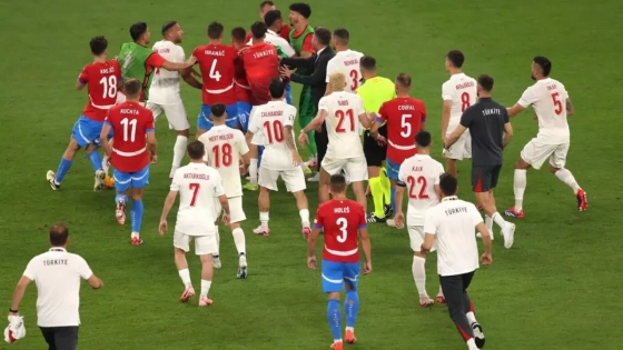 চলমান ইউরোতে নাটকীয় এক ম্যাচে তুরস্ক হামবুর্গে চেক প্রজাতন্ত্রের বিরুদ্ধে ২-১ গোলের জয় নিয়ে ইউরো ২০২৪ নকআউট পর্বে তাদের স্থান নিশ্চিত করে। এই ম্যাচটি স্মরণীয় হয়ে থাকবে শুধু উত্তেজনাপূর্ণ ফুটবলের জন্য নয়, বরং ইউরোর ইতিহাসে সবচেয়ে বেশি কার্ড দেখানোর জন্য, যেখানে মোট ১৮টি কার্ড দেখানো হয়েছে।