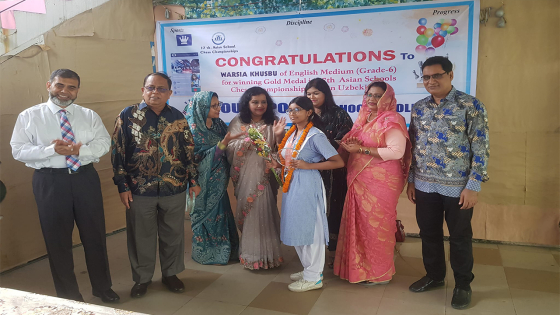 উজবেকিস্তানের তাসখন্দে অনুষ্ঠিত প্রতিযোগিতায় সাউথ পয়েন্ট স্কুলের গ্রেড সিক্সের ছাত্রী ওয়ার্শিয়া খুশবু ৯ খেলায় ৭ পয়েন্ট নিয়ে টাইব্রেকিং পদ্ধতিতে তাজাকিস্তানের প্রতিদ্বন্দ্বীকে হারিয়ে স্বর্ণপদক অর্জন করে।