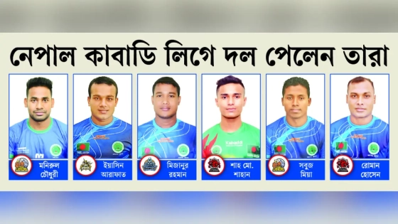 নেপাল কাবাডি লিগে দল পেয়েছেন বাংলাদেশি ৬ খেলোয়াড়—মনিরুল চৌধুরী, ইয়াসিন আরাফাত, মিজানুর রহমান, শাহ মোহাম্মদ শাহান, সবুজ মিয়া ও রোমান হোসেন।