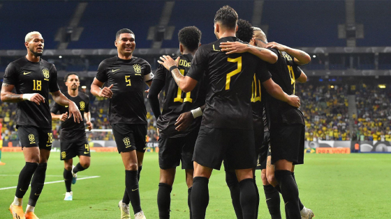 গিনির বিপক্ষে প্রীতি ম্যাচে নিজেদের ইতিহাসে এই প্রথম কালো জার্সি পরতে দেখা গেল পাঁচবারের বিশ্ব চ্যাম্পিয়নদের। মূলত ভিনিসিউস জুনিয়রের সঙ্গে বর্ণবাদী আচরণের প্রতিবাদেই মূলত কালো জার্সি পরে খেলতে নামা। বর্ণবাদ বিরোধী অভিযানে ভিনিসিউসের সমর্থনে এই ম্যাচগুলো খেলছে ব্রাজিল। আগামী মঙ্গলবার সেনেগালের মুখোমুখি হবে তারা।