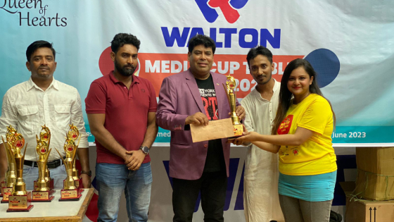 ওয়ালটন মিডিয়া কাপ টেবিল টেনিস প্রতিযোগিতা নারী এককে চ্যাম্পিয়ন হয়েছেন নিউজ২৪-এর নওরীন স্বর্ণা। পুরুষ এককে চ্যাম্পিয়ন হয়েছেন খান নয়ন। দ্বৈতে চঞ্চল-রুমেল জুটিকে হারিয়ে চ্যাম্পিয়ন হয়েছে জ্যোতির্ময়-নয়ন জুটি।