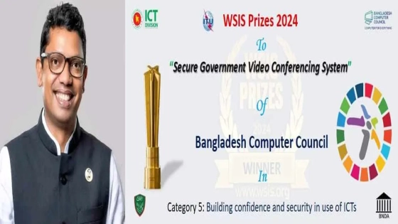 নিরাপদ ভিডিও কনফারেন্সিং সিস্টেম তৈরির জন্য উইনার হিসেবে বাংলাদেশ কম্পিউটার কাউন্সিলকে (বিসিসি) দেওয়া পুরস্কার গ্রহণ করবেন তিনি। ডব্লিউএসআইএস-এর এক ই-মেইল বার্তার বরাতে এ তথ্য জানিয়েছে তথ্য ও যোগাযোগ প্রযুক্তি (আইসিটি) বিভাগ। সুইজারল্যান্ডের জেনেভায় অনুষ্ঠিতব্য ফোরামে এ পুরস্কার প্রদান করা হবে।
