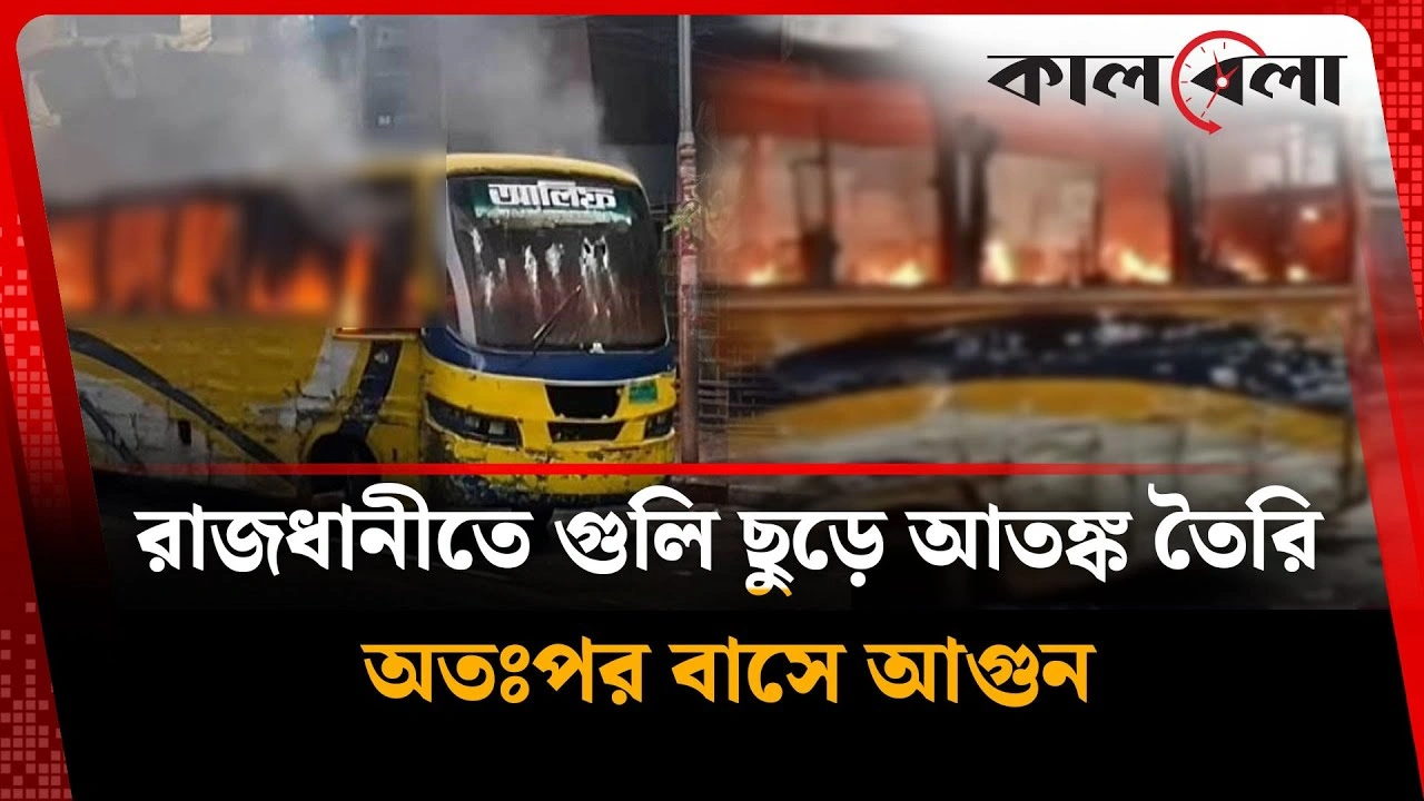 রাজধানীতে গুলি ছুড়ে আতঙ্ক তৈরি, অতঃপর বাসে আগুন