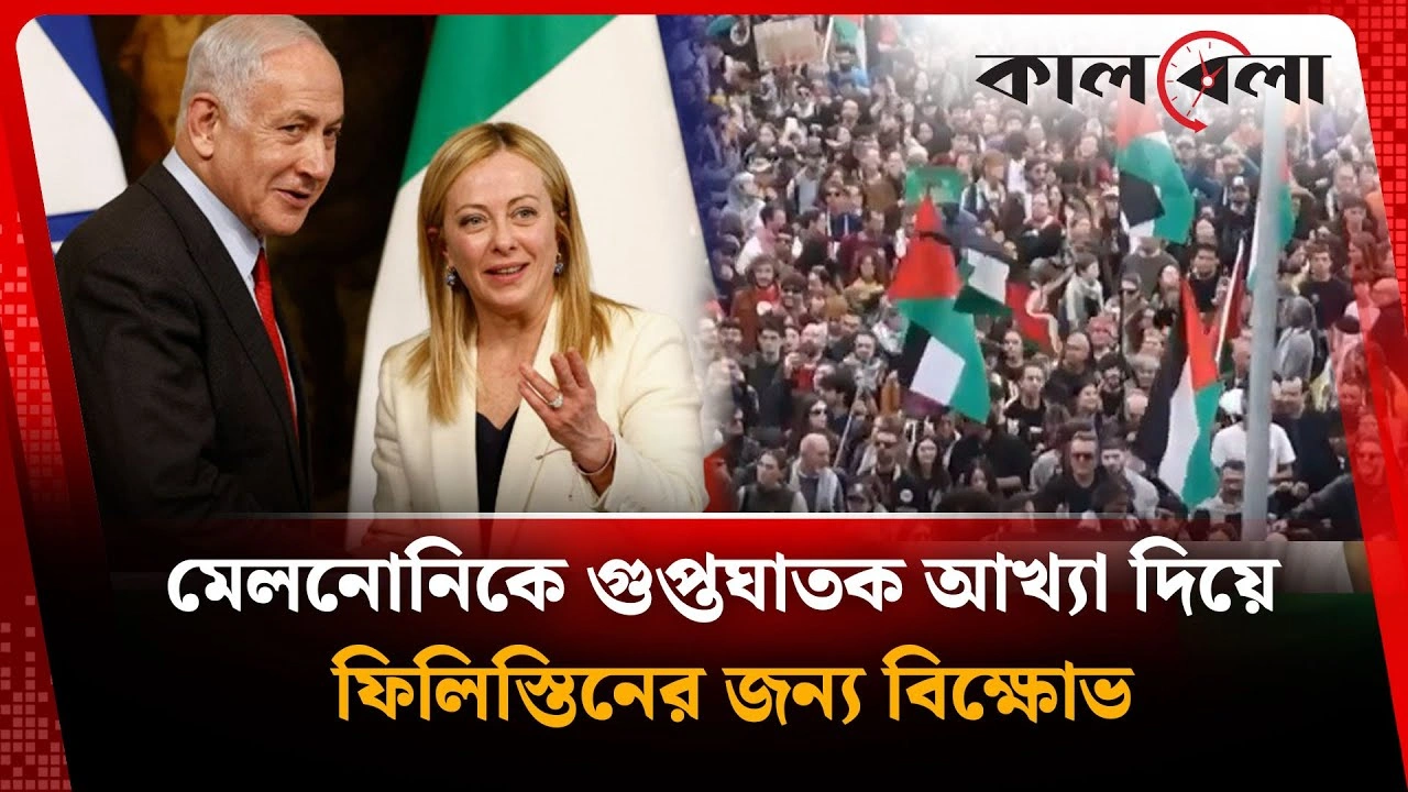 মেলনোনিকে গুপ্তঘাতক আখ্যা দিয়ে ফিলিস্তিনের জন্য বিক্ষোভ