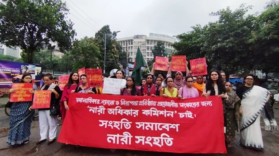 জীবনের সব পরিসরে সমানাধিকার-ন্যায্যতা ও নিরাপত্তা প্রতিষ্ঠায় প্রয়োজনীয় সংস্কার ও পদক্ষেপের জন্য ‘নারী অধিকার কমিশন’ গঠনের দাবিতে সংহতি সমাবেশ করেছে নারী সংহতি।