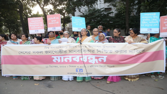 সোমবার (১১ ডিসেম্বর) বিকাল সাড়ে ৩টায় গুলিস্তান জিরো পয়েন্টে ‘বিশ্ব মানবাধিকার দিবস’ উদযাপন উপলক্ষে বাংলাদেশ মহিলা পরিষদের উদ্যোগে মানববন্ধন কর্মসূচিতে বিশিষ্টজনের এসব মন্তব্য করেন।