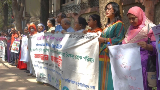 ‘নারীর সমঅধিকার, সমসুযোগ- এগিয়ে নিতে চাই পর্যাপ্ত বিনিয়োগ’ এই প্রতিপাদ্য এবং ‘চাই ভূমি-কৃষিতে নারীর পূর্ণ অধিকার, মজুরিসহ সব ক্ষেত্রে সমঅধিকার, অন্যায্য বৈষম্য হোক পরিহার’- এই স্লোগানকে সামনে রেখে আন্তর্জাতিক নারী দিবস উদযাপন উপলক্ষে মানববন্ধনটি আয়োজন করে এএলআরডি, বেলা, নিজেরা করি, বাদাবন সংঘ, আরবান, ব্লাস্ট, আইপিডিএস, কাপেং ফাউন্ডেশন, মানবাধিকার সংস্কৃতি ফাউন্ডেশন, এনডিএফ, নাগরিক উদ্যোগ, বারসিক ও তৃণমূল উন্নয়ন সংস্থা। দেশের বিভিন্ন অঞ্চল থেকে প্রায় দেড়শ নারী-পুরুষ এতে অংশ নেন।