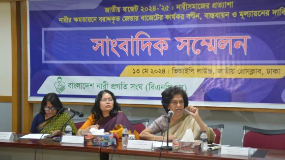 নারীর ক্ষমতায়নে বরাদ্দ করা জেন্ডার বাজেটের কার্যকর বণ্টন, বাস্তবায়ন পরিবীক্ষণ, মূল্যায়ন ও বরাদ্দ নিশ্চিতের দাবি জানিয়েছে বাংলাদেশ নারী প্রগতি সংঘ।