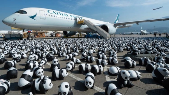 কোনোটি কাত হয়ে শুয়ে, কোনোটি বসে আর কোনোটি চার পায়ে বা দুই পায়ে দাঁড়িয়ে। তবে আশ্চর্যের ব্যাপার হচ্ছে, এর কোনটিই সত্যিকারের নয়, বরং দেখতে হুবহু পান্ডার মতো। আসলে এটি পান্ডার ভাস্কর্য। বিমানবন্দরে আসা অতিথিদের স্বাগত জানাতে অভিনব এ আয়োজন করেছে হংকং বিমানবন্দর কর্তৃপক্ষ।