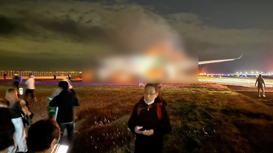 এনএইচকে এ ঘটনার একটি ভিডিও শেয়ার করেছে। ভিডিওতে দেখা যায়, বিমানের জানালা ও নিচ থেকে আগুনের শিখা বেরিয়ে আসছে। রানওয়েতেও আগুন ধরে গেছে। অগ্নিকাণ্ডের দুই ঘণ্টা পার হলেও এখনো বিমানে আগুন জ্বলছে।