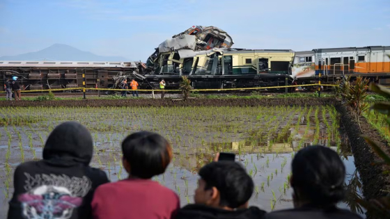 ইন্দোনেশিয়ার প্রাদেশিক পুলিশের মুখপাত্র টম্পো জানান, শুক্রবার স্থানীয় সময় সকাল সাড়ে ৬টায় জাভা প্রদেশের সিকালংকাতে ধান ক্ষেতের কাছ এ দুর্ঘটনা ঘটে। এতে ট্রেনের বগি উল্টে যায়। ফলে অনেকে হতাহত হয়েছেন ।